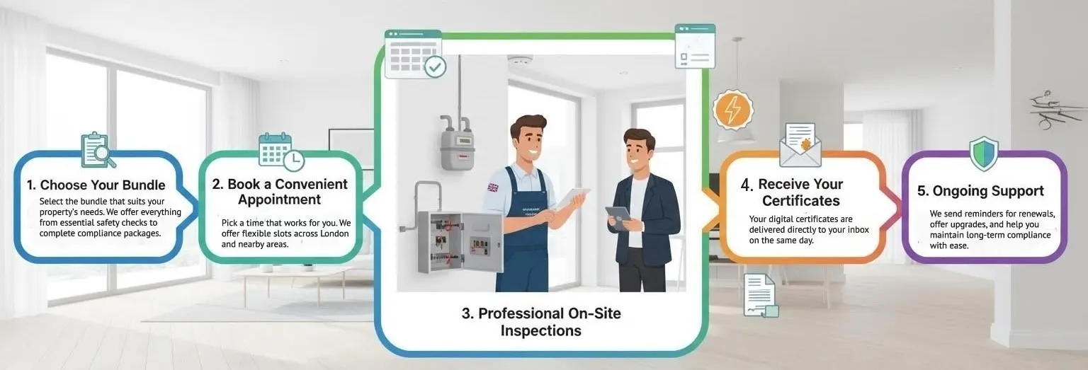 Our service stands out for being fast, simple, and affordable. We offer flexible appointments, clear pricing, and certified engineers to ensure your compliance without the stress.